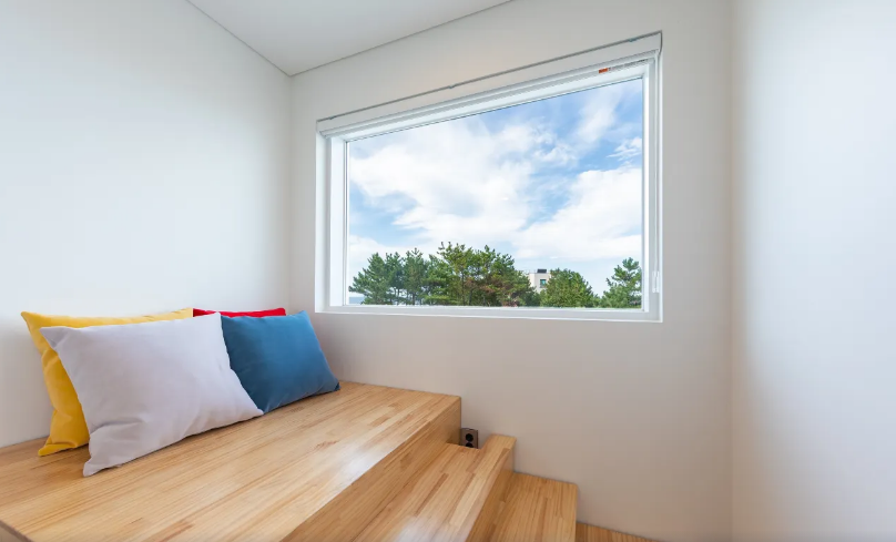 화이트톤 미니멀 인테리어에 통유리창으로 동해의 바다를 담아냈죠.